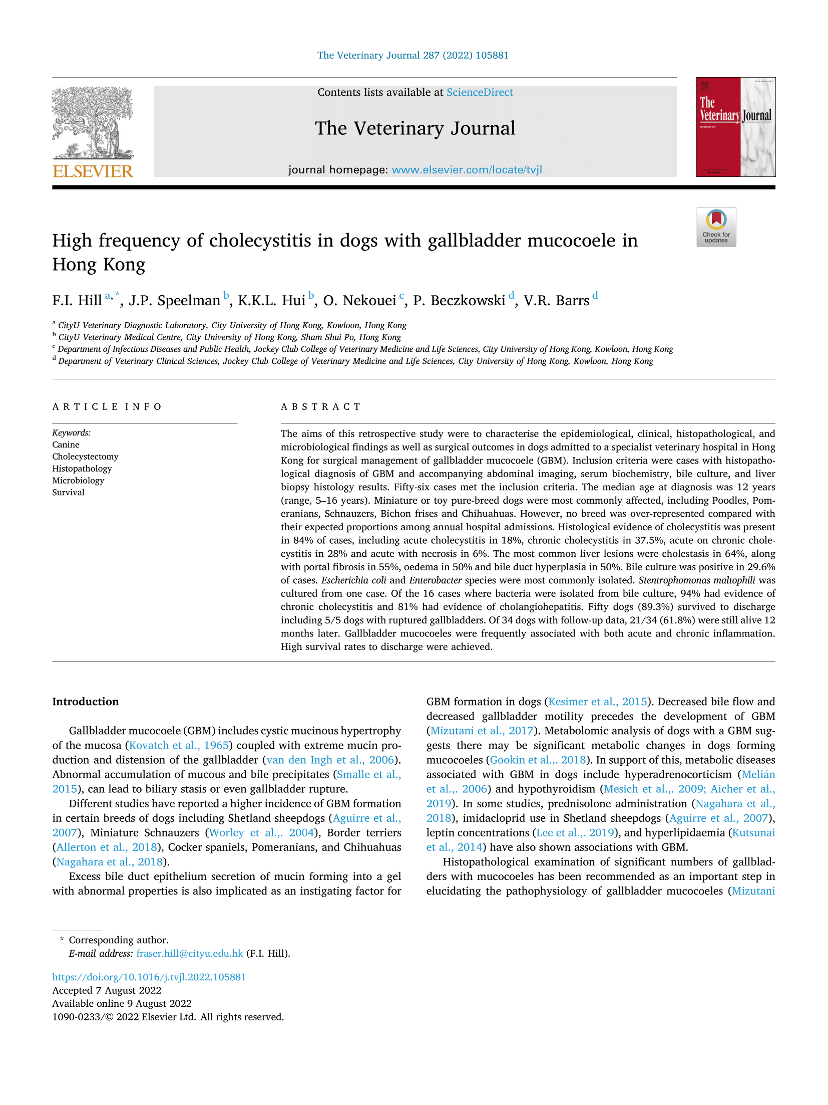 F.I. Hill, J.P. Speelman, K.K.L. Hui, O. Nekouei, P. Beczkowski, V.R. Barrs