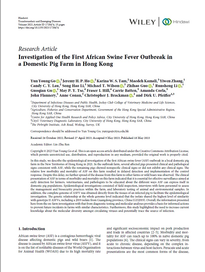 Yun Young Go , Jeremy H. P. Ho ,KarinaW. S. Tam, Maedeh Kamali, Yiwen Zhang, Candy C. Y. Lau, Song Hao Li, Michael T. Wilson , Zhihao Guo , Runsheng Li , Guoqian Gu , May P. Y. Tse, Fraser I. Hill, Carrie Batten, Amanda Corla, John Flannery, Anne Conan, Christopher J. Brackman, Dirk U. Pfeifer