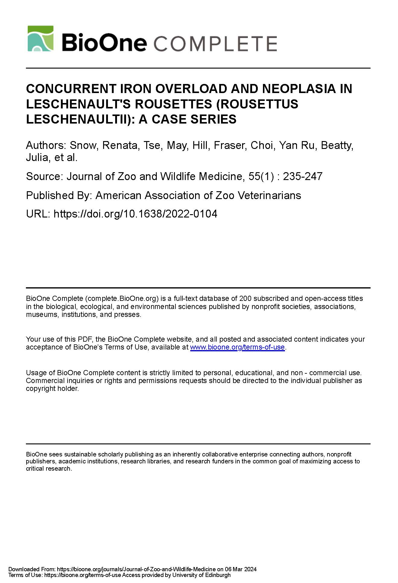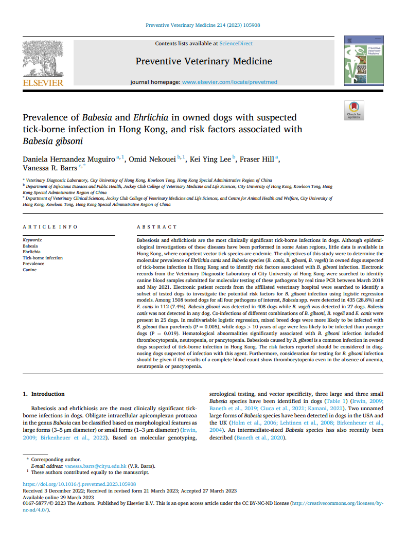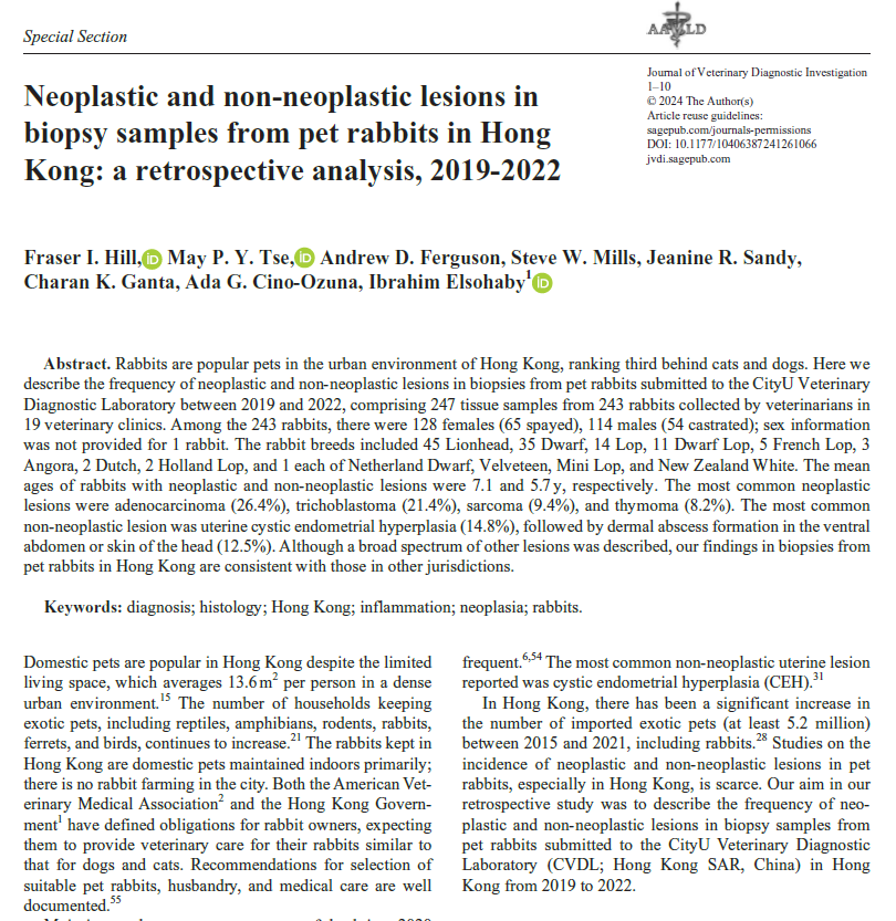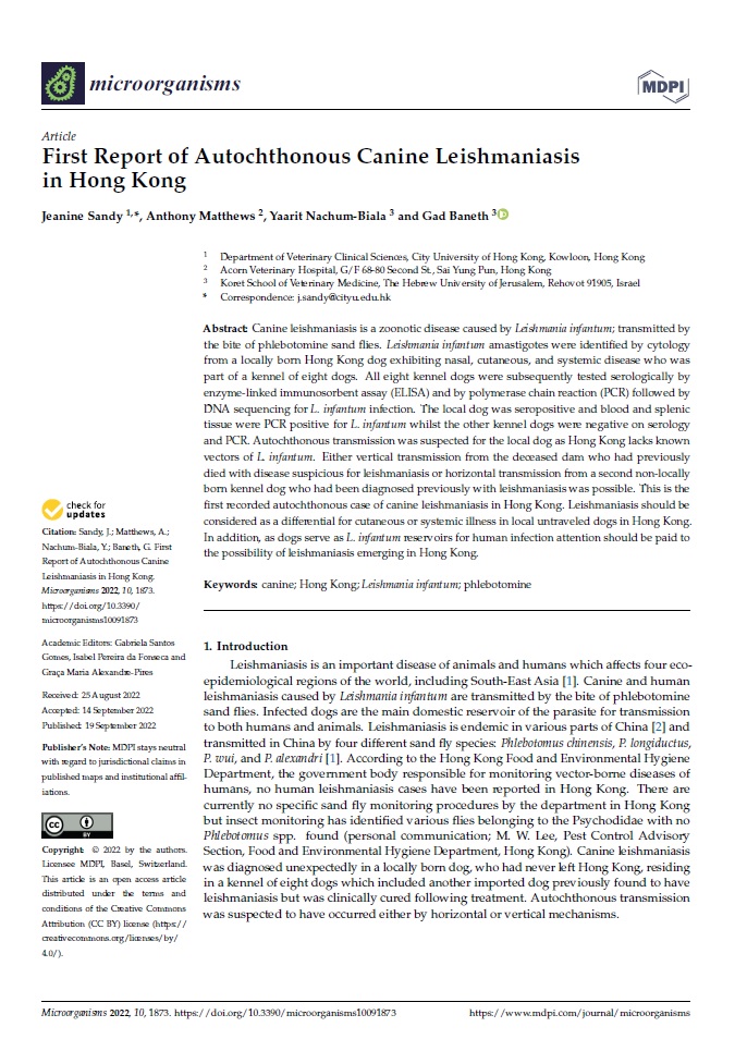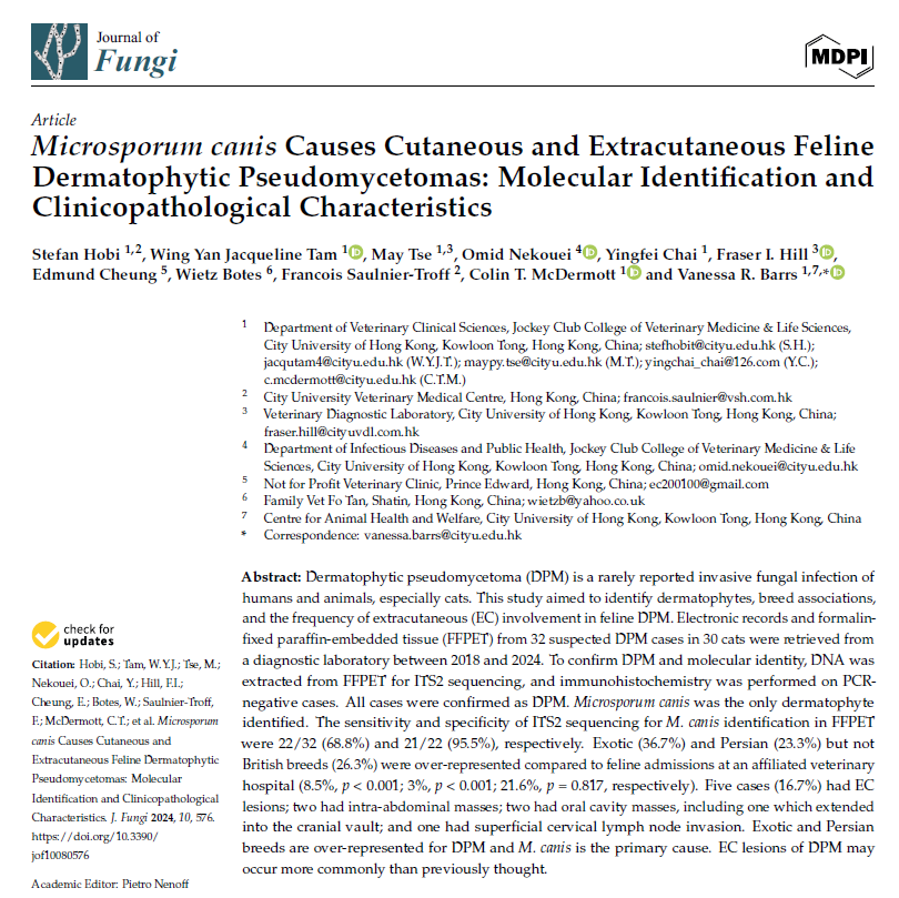 Stefan Hobi, Wing Yan Jacqueline Tam, May Tse, Omid Nekouei, Yingfei Chai, Fraser I. Hill, Edmund Cheung, Wietz Botes, Francois Saulnier-Troff, Colin T. McDermott and Vanessa R. Barrs