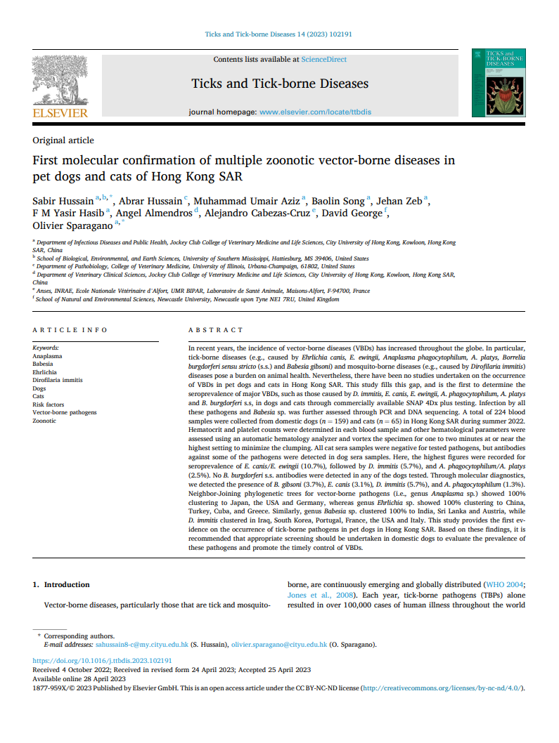 Sabir Hussain, Abrar Hussain, Muhammad Umair Aziz, Baolin Song, Jehan Zeb, F M Yasir Hasib, Angel Almendros, Alejandro Cabezas-Cruz, David George, Olivier Sparagano