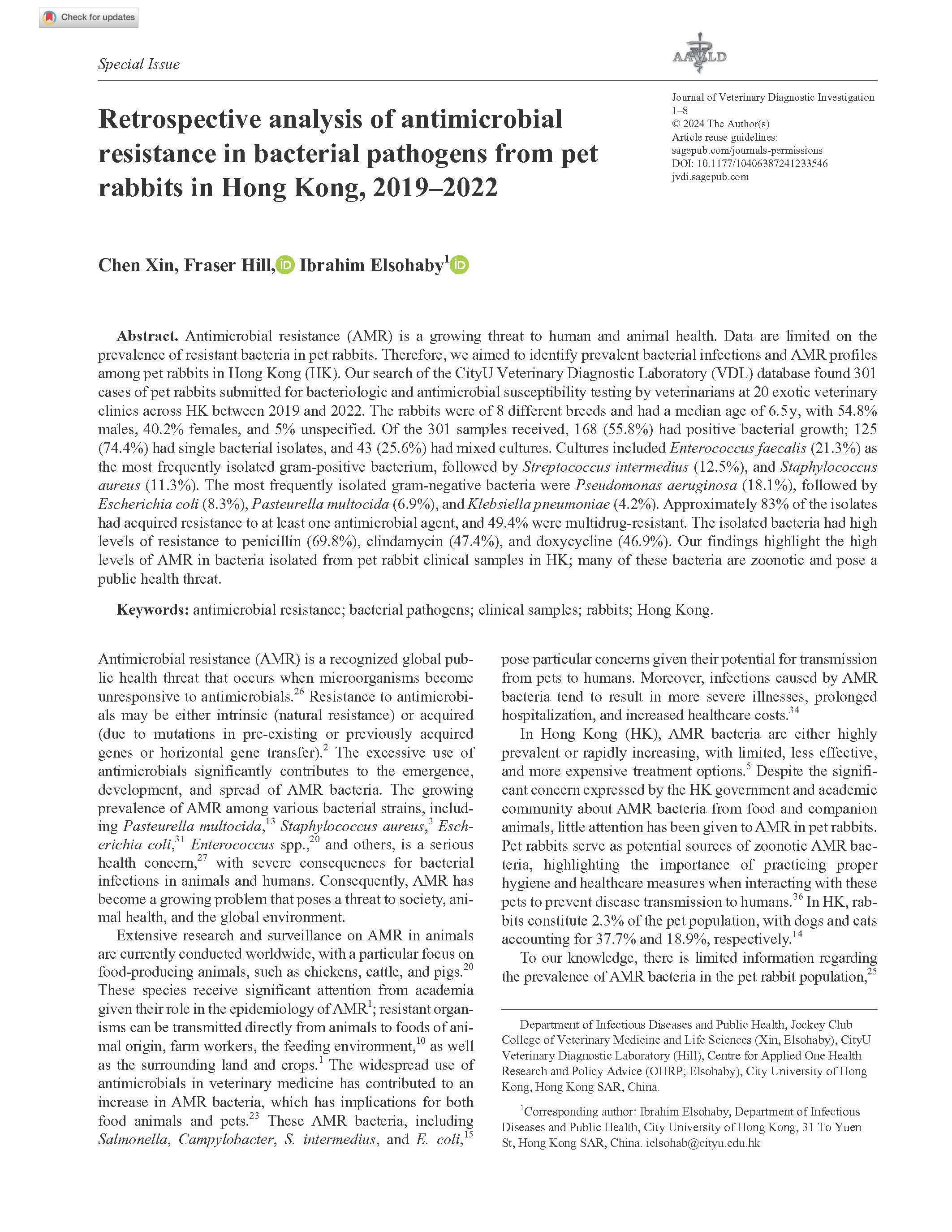 Fraser Hill, May P.Y. Tse, Andrew D. Ferguson, Steve W. Mills, Jeanine R. Sandy, Charan K. Ganta, Ada G. Cino-Ozuna and Ibrahim Elsohaby